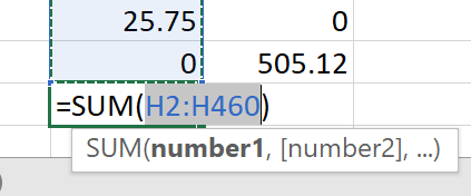 Click the AutoSum option and excel will automatically fill in the formula to add the row or column together.