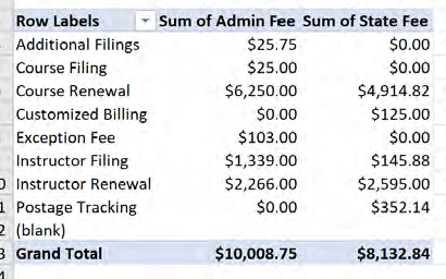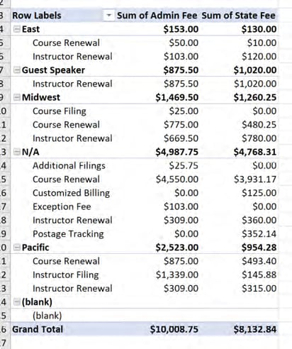 Please note: The above examples show Compliance & Admin billable activity, but a separate pivot table can be created with the Seminar Activity details as well.