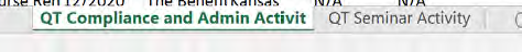 To toggle between the QT Compliance and Admin Activity report and QT Seminar Activity report, click on the tabs located at the bottom of the workbook.